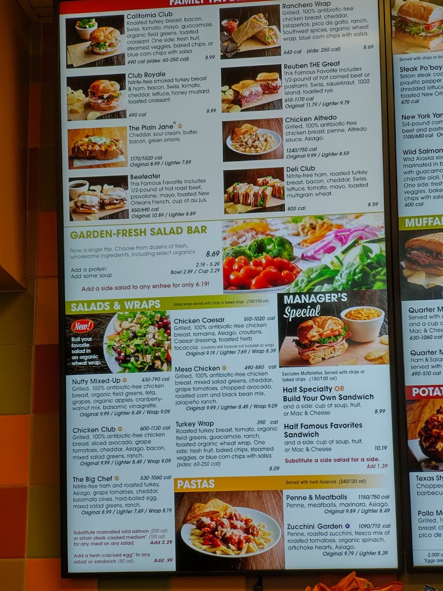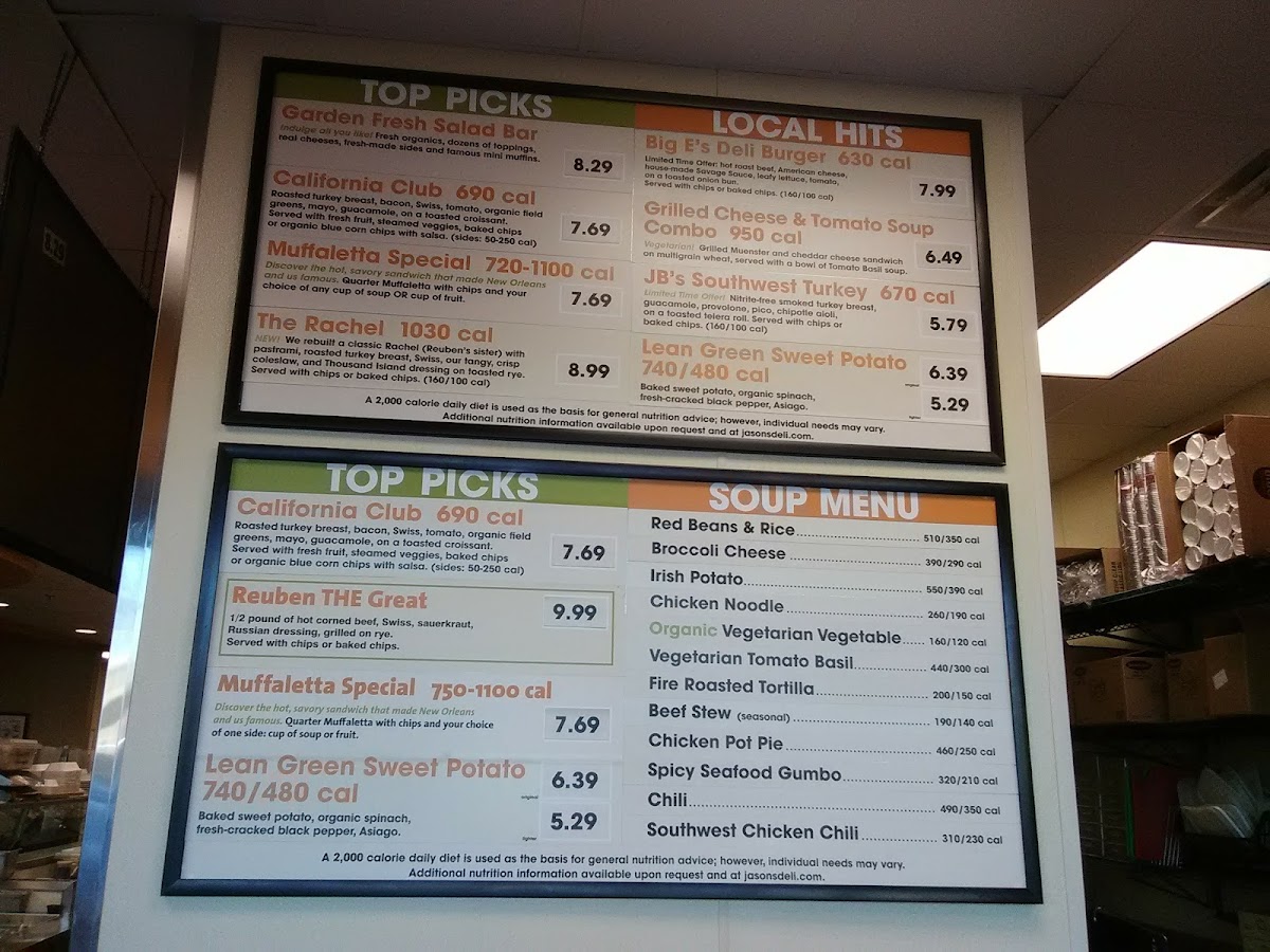 Introducing the menu at Jason's Deli offers a warm embrace of classic, comforting dishes crafted with fresh, quality ingredients. Known for hearty baked potatoes like the Texas Style Spud, stuffed with pit-smoked BBQ beef and cheddar, and the rich Chicken Alfredo—tender grilled chicken over penne in creamy Asiago sauce—Jason's Deli delivers on flavor and satisfaction. Mornings shine with options like the Sunshine Breakfast Croissant, featuring fresh eggs, melted cheddar, and your choice of savory meats, or the nutritious Avocado Toast, paired with soup, fruit, or mac & cheese for a balanced start.